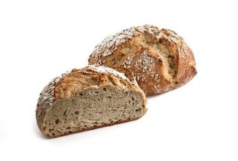 Wyjątkowy chleb z mąki pszennej i orkiszowej z dodatkiem ziaren słonecznika, siemienia lnianego i mąki żytniej.